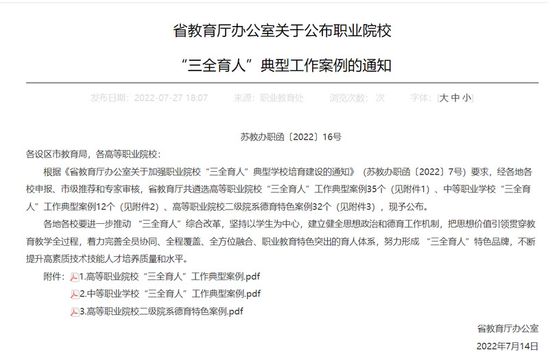 我校“三全育人”案例入选省级德育特色案例