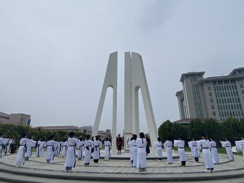 参加活动的同学有学生党员、入党积极分子、学生干部和23级新生代表。经过两天的排演,再现了古人入学时最隆重的“拜师礼”,展现了尊师重优良传统。活动中,全体师生身着传统汉服,先向先师孔子像行揖礼,学生向教师代表行揖礼其次,学生献上束脩六礼,教师代表回礼;教师训诫勉励学生,学生八自”原则明志回应。最后,齐诵经典,朗朗诵读声响彻校园。敬师礼复原了古代传统的仪式程序,使师生们直观感受到教师职业的崇高,意识到师道传承的意义。活动结束后,同学们纷纷表示:“‘拜师礼展现了中华优秀传统文化,让我们感受尊师重教的意义。