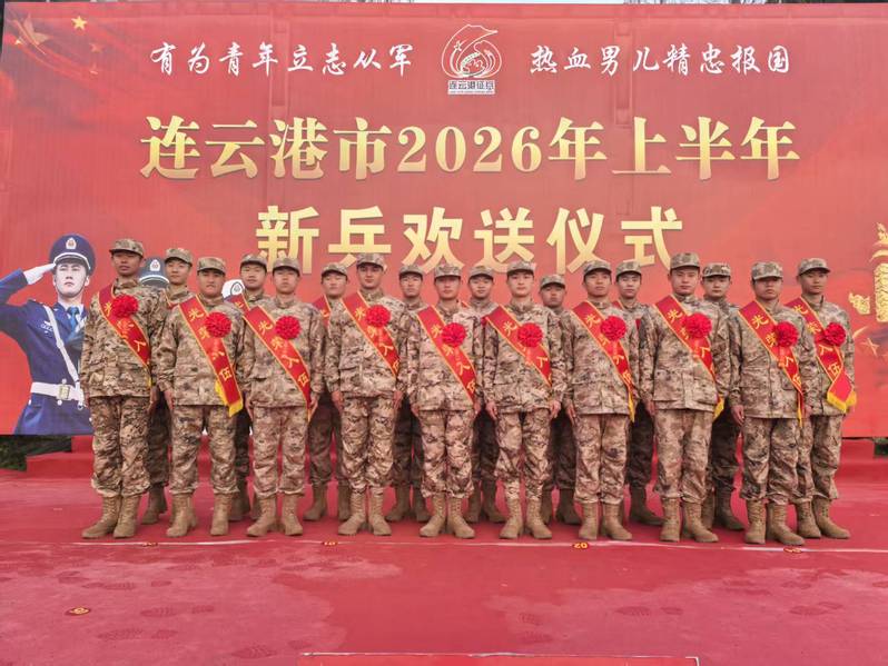 近日,连云港市2026年上半年新兵欢送仪式圆满举行,我校19名优秀学子身着戎装、胸佩红花,光荣应征入伍,正式踏上保家卫国的军旅征程,用青春行动践行新时代青年的使命担当。